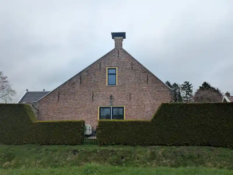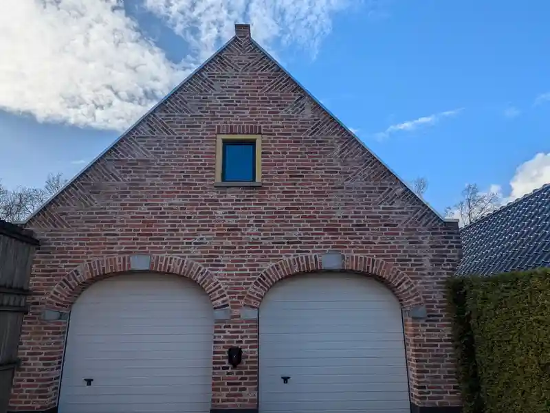 Op het vooraanzicht is goed te zien hoe de deklijsten het gebouw rustig afwerken. Ze vallen niet overdreven op, maar doen wel precies wat ze moeten doen: het metselwerk bovenaan beschermen, zonder af te doen aan het nette geheel.