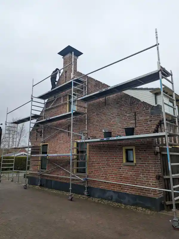 Bij dit project in Midwolda hebben wij een groot aantal zinken deklijsten aangebracht. Zo'n deklijst geeft een pand niet alleen een strakke afwerking, maar helpt vooral ook om het metselwerk te beschermen tegen inwatering en vervuiling langs de bovenzijde van de gevel.